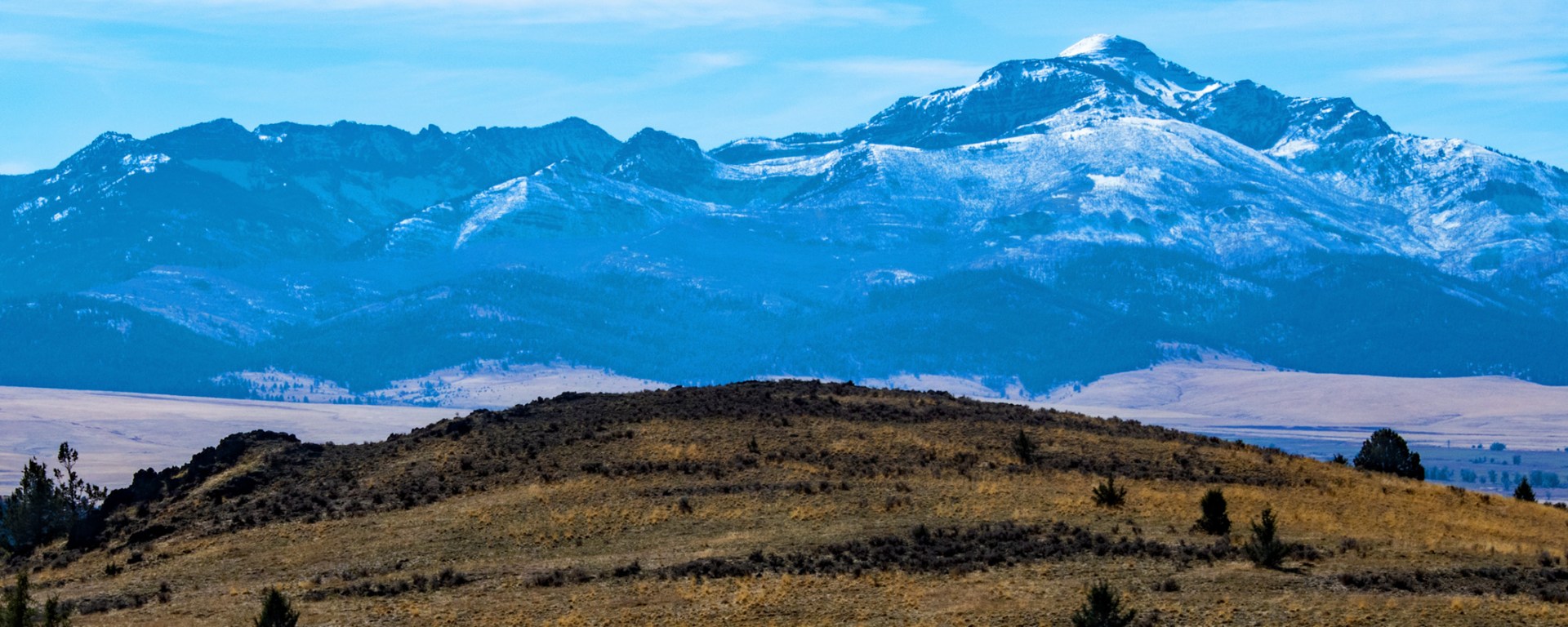 The Blue Mountains take their name from the bluish haze that usually hangs across the rugged, high peaks. The range is located in central Oregon.