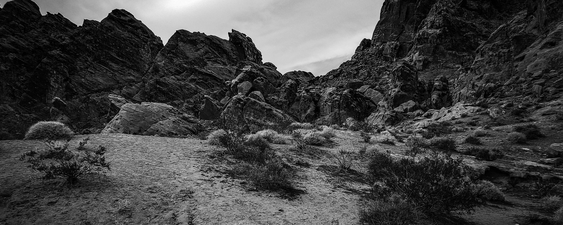 I took this photo at Valley of Fire State Park in Nevada last February. The original was shot in color, but I was messing around a little with some contrast settings and vignettes. I like the brooding mood of this shot in black and white.