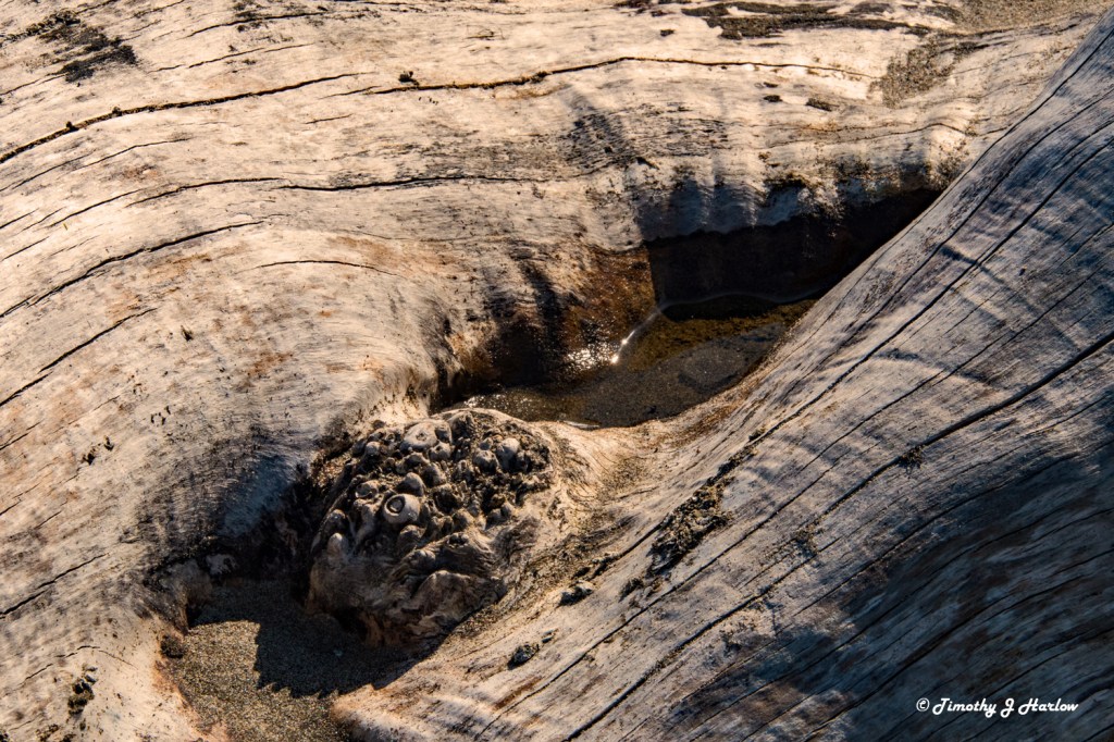 This is another closeup on an old log with some barnacles in it. For me it seems to work just about as well in black and white as it does in color. What do you think?