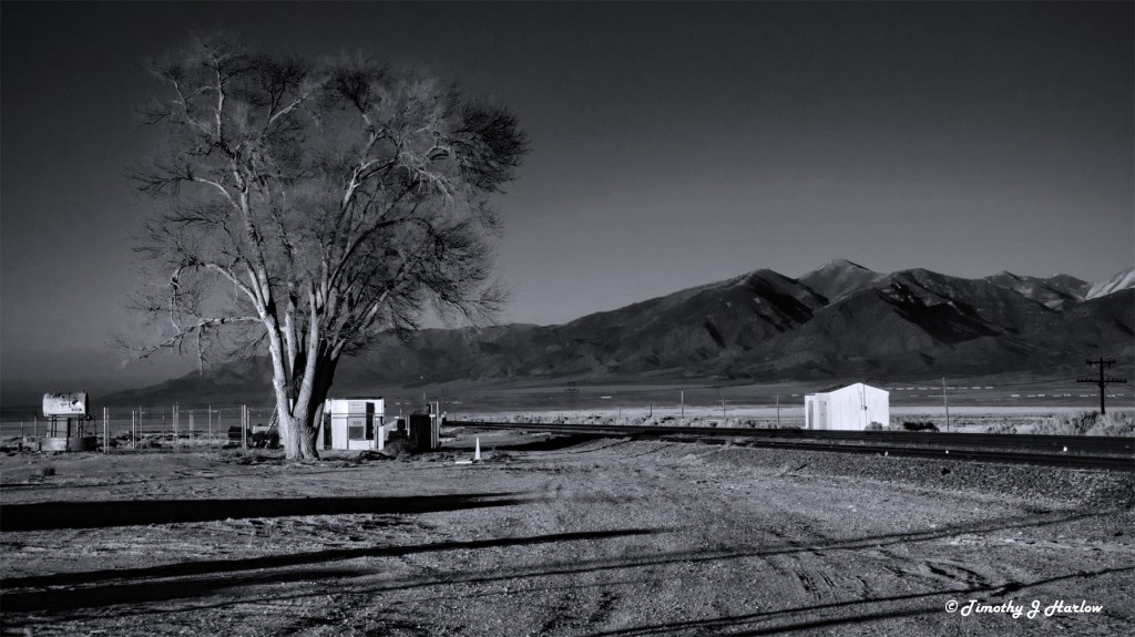 I got out to Faust just when I wanted, but the air was horrible. Looking back eastward toward the Wasatch there was this awful brown haze. I really bummed me out, and it definitely messed up the photo opportunity. I got this photograph, and I think it is really good. But I wanted to have that rich, late afternoon color. After seeing the original color photographs, I decided that this day’s work would be in black and white. It seemed to help disguise the brown haze.