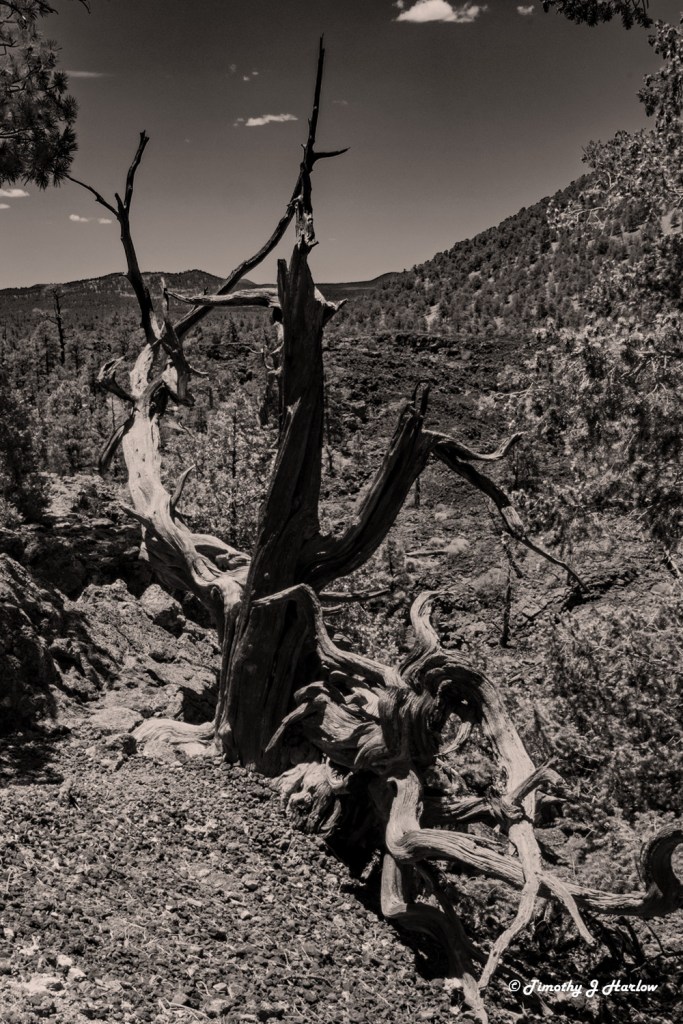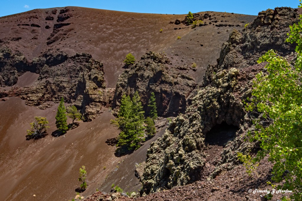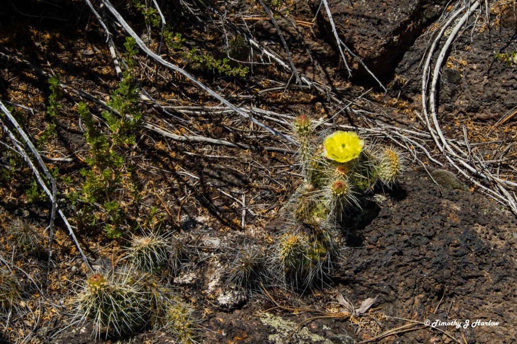 One of the interesting things about this particular lava flow were the numerous lava tubes. I had not really seen those since I was in Hawaii the last time. You could see evidence of lava tubes everywhere, and frankly it was a little unsettling knowing that one of these could cave in at any time. I was also amazed at just how much diversity there was in the plant life throughout the flow. There was everything from huge conifers down to tiny little cactuses.