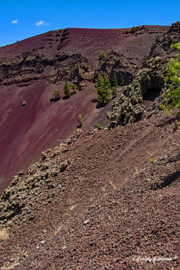 There were two options for the hike to the volcanic crater and then back down to the ice cave. The first option was to hike up to the crater and then return to the visitor center. Then take another trail down to the ice cave. The second option was to hike up to the crater, and then on the return route take another trail directly through the lava flow over to the ice cave and then back to the visitor center at the end. That is the route that I chose.