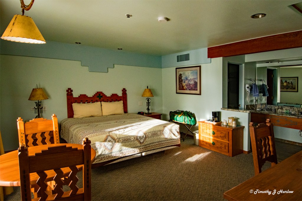 When I got to my second floor room in a newer wing of the motel, I was stunned. This was by far the nicest place I stayed on my entire Route 66 trip. The room was absolutely gorgeous with heavy wooden furniture and native decor.