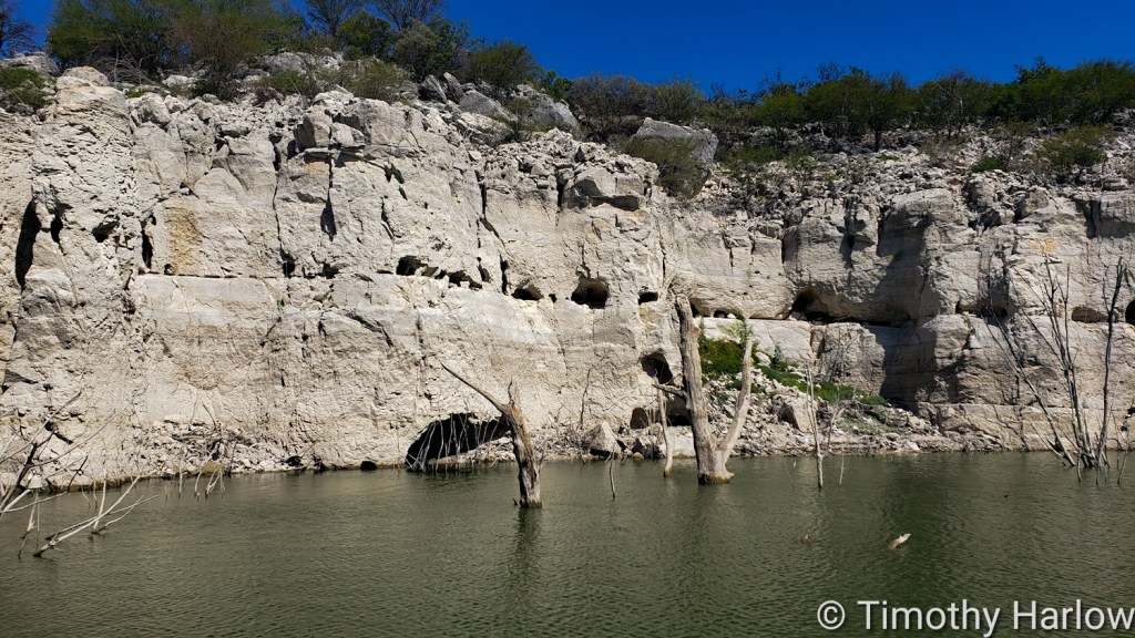 One thing that I noticed right away was the incredible effect that climate change has had on Lake Amistad as well as the weather that we experienced while we were there. I grew up in El Paso in west Texas up the Rio Grande River a few hundred miles to the northwest. Summers in El Paso were always hot, but 100° days were fairly rare and not all that frequent. That is not the case nowadays, however.
