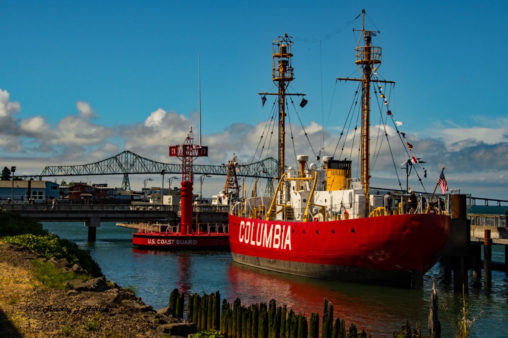 The city lies at the southwestern end of the Columbia River as it pours into the Pacific Ocean. The area is quite rich in early American exploration history as Lewis and Clark’s first winter camp at Fort Clatsop is only a few miles from Astoria. And north across the Columbia River is the spot where Meriwether Lewis and William Clark first reached the Pacific Ocean in their attempt to find a “Northwest Passage” across the continent. Not far south are the popular Oregon beach recreation towns of Seaside and Cannon Beach with its famous Haystack Rock.