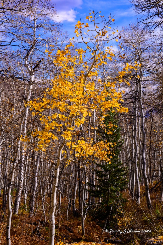 For some reason this one Aspen tree had retained its bright fall colors while it’s neighbors had all lost theirs.