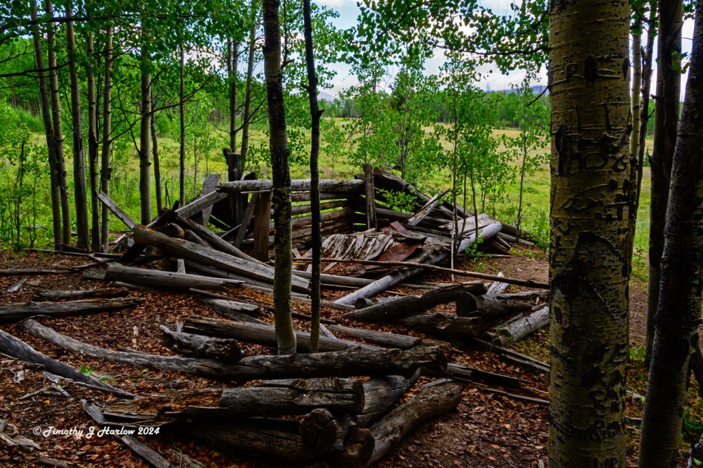 Well into our drive we found an interesting historical marker about another mining town called Bachelor City. This city was larger than Creede and located up in a high mountain meadow. At one point the town had numerous saloons, gambling houses and of course prostitutes. David and I hiked around the area, but only found one old broken down cabin remains. Other than the historical marker, one would never know that there had ever been a town here.