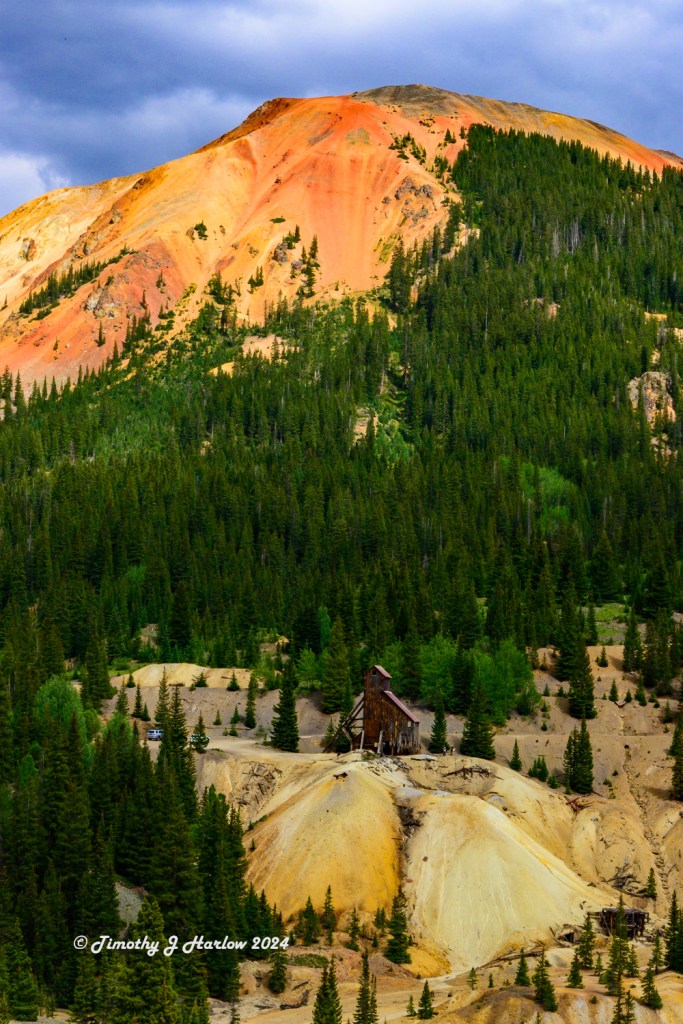 David and I had an awesome breakfast Saturday at a small café called MJ’s in Creede. Then we took David’s truck (a 4 wheel drive F350) up a long 4 wheel drive road called the Bachelor Loop. It heads up into the mining country to the north of Creede. Again, the scenery was astounding.